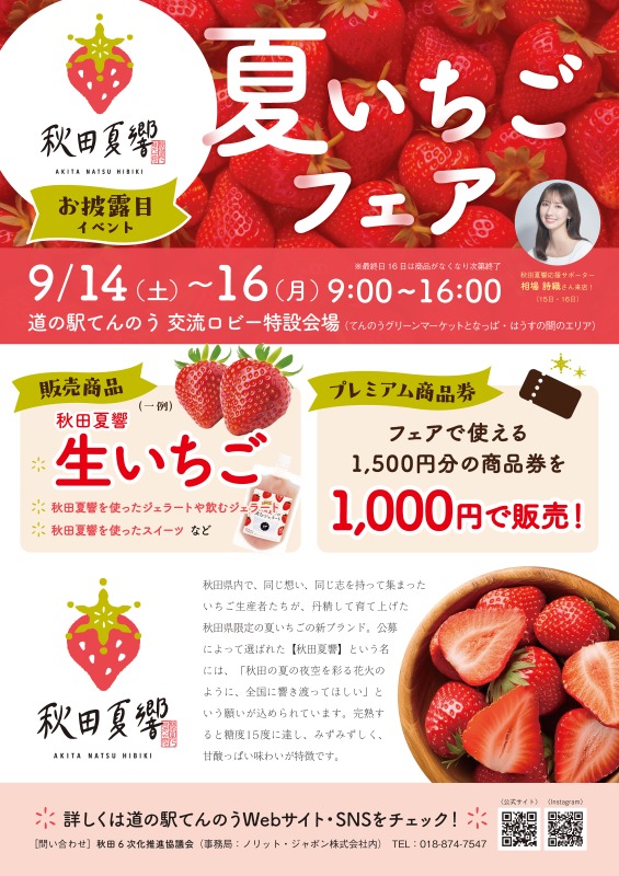 - > 【9/14~16開催】秋田夏響お披露目イベントいちごフェア