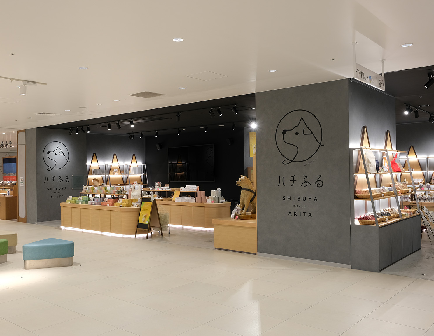本プロジェクトの最大のコンセプトは、渋谷の象徴として愛される「忠犬ハチ公」が、実は秋田県生まれの「秋田犬」であるというルーツに着目した点にあります。「渋谷のハチ公」と「ふるさと秋田」の縁(えにし)をつなぐ地方創生型ショップとして、ブランドの全体設計を行いました。
